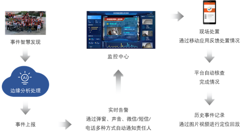 通過設(shè)立“外-中-內(nèi)”三道防線,實(shí)時(shí)監(jiān)測小區(qū)內(nèi)“人、車、房、物、事”,構(gòu)建社區(qū)安防管理閉環(huán),為社區(qū)治理進(jìn)行AI賦能。