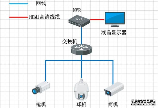 小型的監(jiān)控系統(tǒng)組成非常簡單,通常就是前端幾個攝像頭,然后接交換機(jī),交換機(jī)接NVR,NVR直接連接顯示器,直接在顯示器上預(yù)覽畫面,NVR的解碼能力比DVR的解碼能力更強(qiáng),現(xiàn)在普通的NVR都是支持1-8路的1080P的攝像頭解碼,但最近幾年也出現(xiàn)幾款的高端NVR,集成更加強(qiáng)大的解碼功能,但絲毫未改變NVR就是存儲的產(chǎn)品,所以一般通過NVR顯示,都是應(yīng)用在一些低端,點位數(shù)較小的項目中,比如超市和店鋪這類預(yù)算較低的項目。同DVR顯示一樣,普通的NVR的監(jiān)控上墻也會遇到畫面切換控制不方便,且不支持視頻畫面開窗漫游等功能。