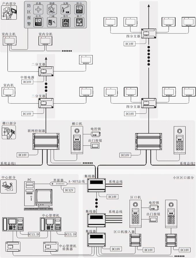 室內(nèi)分機提供緊急報警、瓦斯探測、火災(zāi)探測、大門入侵、客廳防護、窗戶入侵和陽臺入侵等多種報警接口方式,當相應(yīng)的防區(qū)出現(xiàn)警情時可即時上報至管理中心并通過電話/短信告知住戶,管理中心彈出警情提示框; |
